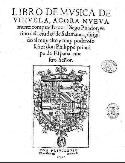 De ellos tiene especial interés el Libro de musica de vihuela agora nuevamente compuesto por Diego Pisador (RISM P 2448) por cuanto pudiera servir para las representaciones teatrales. El llamado Códice de Villagarcía (Biblioteca de la Real Academia de la Historia) recopila obras de teatro hechas en los colegios de Ávila y Medina del Campo, algunas escritas por el padre Juan Bonifacio. En esas obras se recogen la participación musical y los versos cantados “al tono de” como el romance que dice “Triste estaba Abigaíl / llena de angustia y cuidado”, que varía el tradicional Triste estaba el rey David / lleno de angustia y pasión, que había sido puesto en música por otro vihuelista, Alonso Mudarra.
