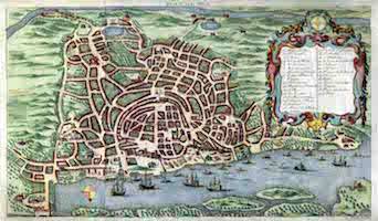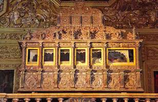 “E entrando asim pela porta da Cidade, foy pela rua direita, a qual a este tempo estava toda de alto abaixo muito ricamente concertada com muitas alcatifas, e pannos de seda, e as janellas muito prepradas, e cheias das mulheres, e filhas de todos os nobres, e por baixo as portas muitas invençoes de perfumes e cheiros suaves. E não somente esta rua, mas todas as outras por onde pasou até a porta do Collegio de S. Paulo... estava o Collegio de gesta com frontaes de brocado em todos os altares... [el cuerpo] se poz em deposito junto do altar mor, a parte do Evangelho, aonde se dise misa solemne con um pontifical de brocado, oficiada com muito boas fallas, e com muitos instrumentos musicos conformes a solemnidades de tamanha festa” [Mendes Pinto, p. 343]