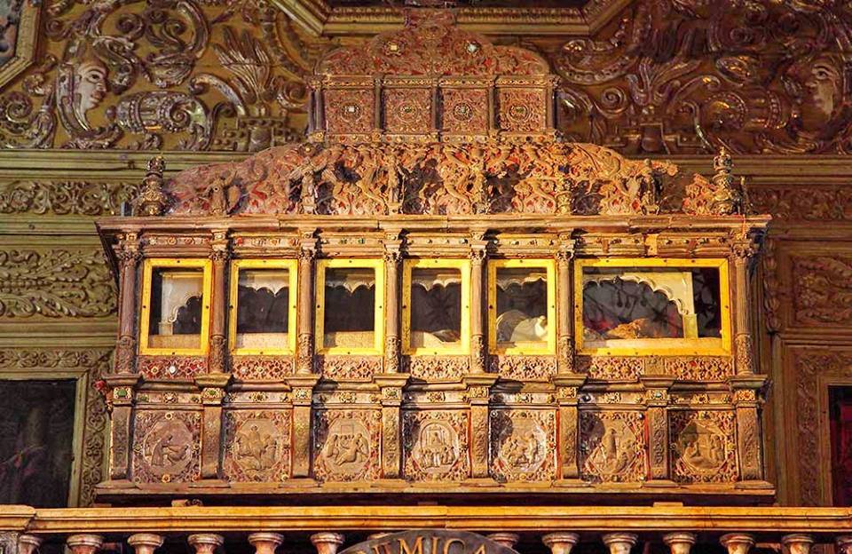On March 16, 1554, the mortal remains of Francisco Javier from Malacca (Malaysia) arrived in Goa (India). The Jesuit provincial of India, Manuel Núñez Barreto, went to pick them up at the ship that brought them in a local boat. Francisco Javier's body was received on the beach and solemnly taken to the Jesuit College of São Paulo, where various liturgical events were held and in which he was buried in a vault located on the side of the main altar.
