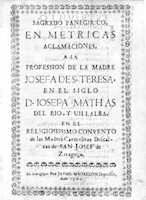 * El tercero de los pliegos, Sagrado panegírico..., reúne los villancicos para la profesión de Josefa de Santa Teresa, en el siglo Josefa Mathas del Río y Villalba, que tuvo lugar también en 1701, sin que se precise, en este caso, el día concreto de su celebración.