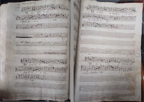* CO-B Ms. 199. LC-GFH. Libro de Vísperas misceláneo que contiene principalmente obras de Gutierre Fernández Hidalgo y de Rodrigo de Ceballos. Las reparaciones dan cuenta de un prolongado uso en la catedral bogotana.