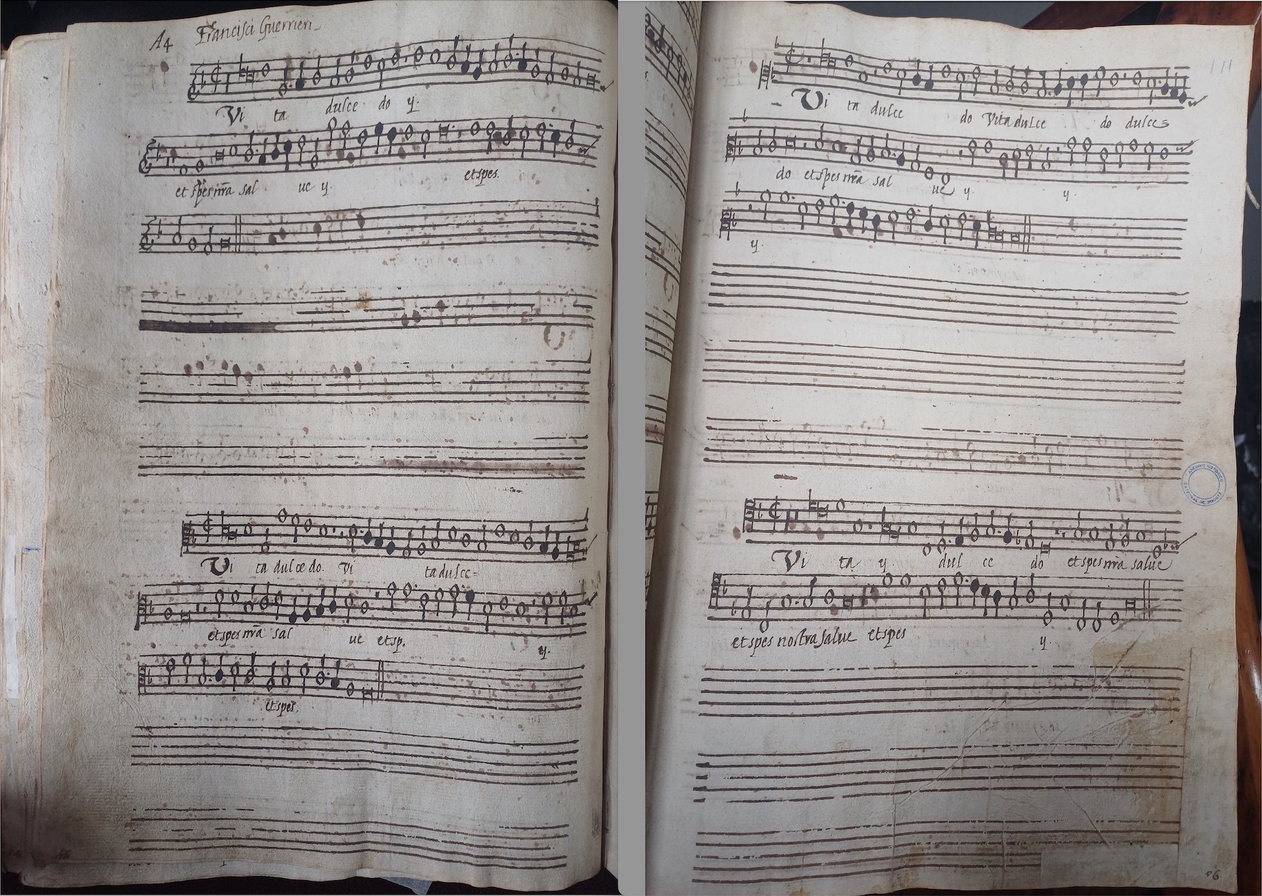 Un inventario fechado el 8 de enero de 1632 (que ha llegado hasta nuestros días a través de un traslado notarial efectuado el 16 de abril de 1635), publicado por Javier Marín López, nos permite conocer la colección de libros de polifonía que la catedral de Santa Fe de Bogotá tenía en ese momento. Entre estos libros, encontramos dos del compositor Francisco Guerrero: