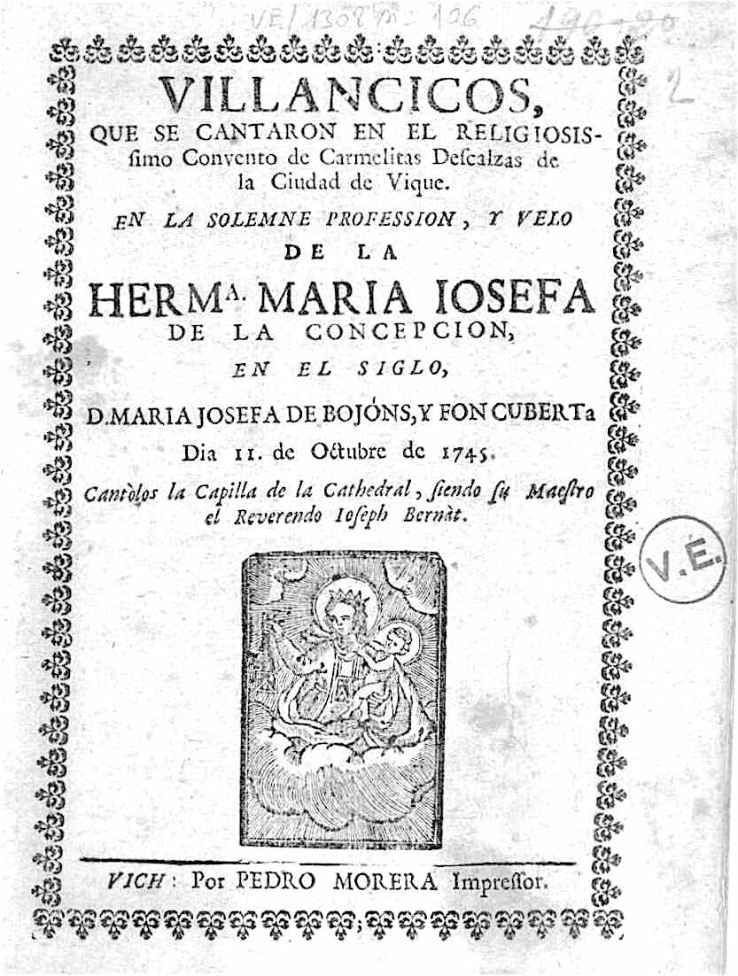 Villancicos composed for the religious profession of nuns in the convent of Santa Teresa in Vic (1745)