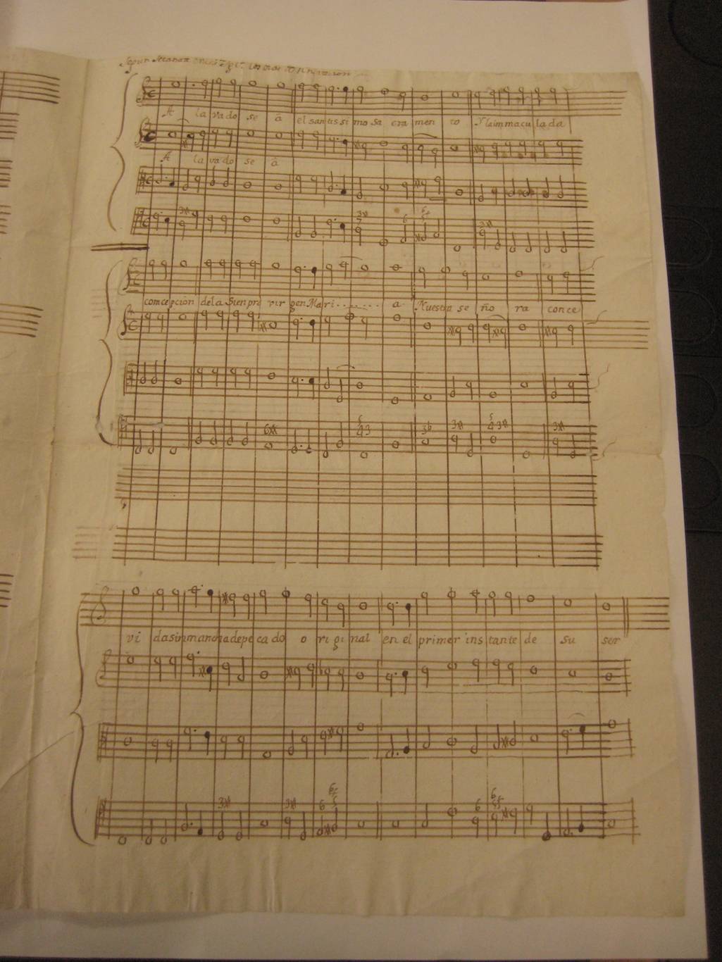 In the remains that have come down to us from the Musical Archive of the Santa Clara convent, currently deposited in the Marqués de Valdecilla Historical Library, in Madrid, we find two works that form a tandem in the city of Seville from the 17th century. It is the Pange lingua hymn of Francisco Guerrero and the Alabado of Juan Sanz [CS-1-02-0062], both chapel masters in the cathedral of Seville. The copy is probably from the second half of the 18th century, which shows the canonization and survival of these two compositions in the repertoire of this Franciscan monastery.