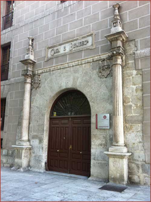 Su residencia en Valladolid se encontraba extramuros, frontera a la iglesia de San Pedro, una de las zonas de expansión de la ciudad en el segundo tercio del siglo XVI (véase recurso). Adquiridos los terrenos en la segunda mitad de la década de 1530, su nueva casa no estaría terminada hasta c. 1551.