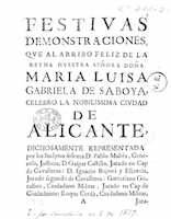 Celebrations made in Alicante for the wedding of Felipe V with María Luisa Gabriela de Saboya (1701)