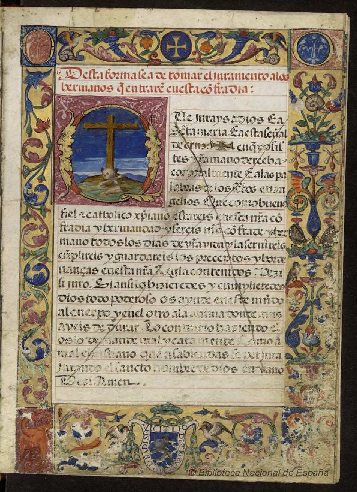 Las reglas de la cofradía de las Ánimas del Purgatorio de la iglesia del Sagrario de Granada fueron aprobadas por el arzobispo Gaspar de Ávalos el nueve de mayo de 1541, siendo esta la primera cofradía de ánimas documentada en la ciudad. Se han conservado en un precioso manuscrito que contiene tres extraordinarias páginas ricamente decoradas y otras dos con letras historiadas y orlas realizadas por el mismo iluminador, muy probablemente Juan Ramírez, el gran miniaturista de los libros de coro de la catedral de Granada en la primera mitad del siglo XVI, las cuales no aparecen citadas en los trabajos dedicados a este pintor. En la primera de ellas, en la parte inferior, encontramos el escudo del arzobispo Ávalos.