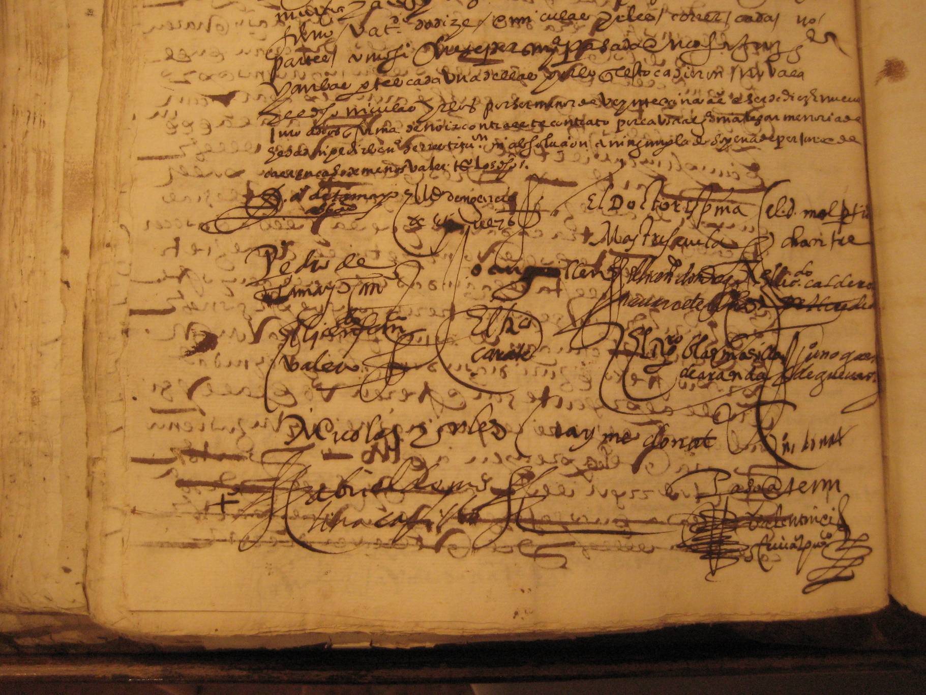 En las rúbricas del segundo contrato (1588), por parte de los ministriles, firman “Diego Donate” (en vez del que suscribe el contrato que es Jaime Donate, sin que se pueda precisar el motivo, tal vez fuera su hijo), “Juan Donate” y “Pedro Pascual” (ver recurso). Faltan las actas capitulares de la colegiata de Baza correspondientes al período que va desde 1588 hasta 1610. En el libro siguiente vemos que, en la reunión capitular de 25 de noviembre de 1611, atento a los servicios que había prestado “Jaime Doñate, ministril, y que tiene un hijo virtuoso” se le concede el que sirva en el coro, probablemente para ejercitarse sin plaza. Juan de Oñate continuó al servicio de la colegiata hasta su muerte en enero de 1620, cuando será sustituido por Ginés Muñoz, y Diego de Oñate será nombrado en la de Antonio Sánchez, para tocar la chirimía “en los días ordinarios que se acostumbra y es obligación y el bajón ha de tocar en todos los dobles”.
