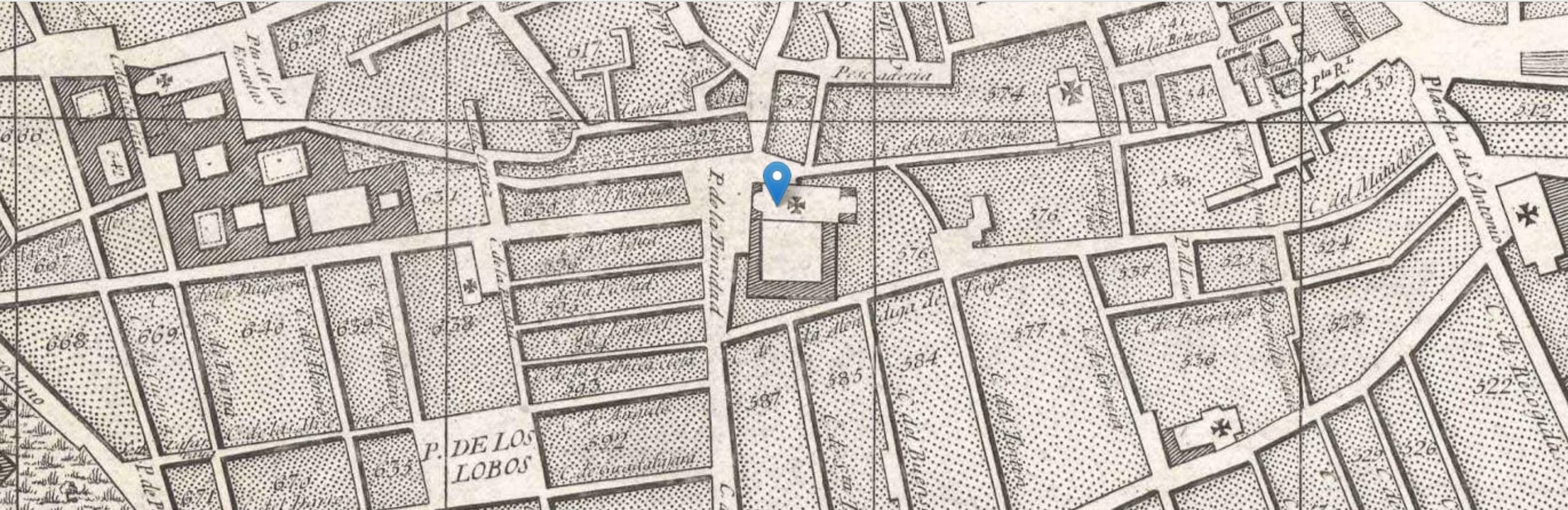 El convento de la Santísima Trinidad se encontraba extramuros de la ciudad, al final de la calle de los Mesones, junto a la antigua puerta de Bibalmazán o del Corro, cuyos restos arqueológicos se han localizado en el número 2 de la calle Capuchinas. Este cenobio de trinitarios calzados pertenecía a la collación de Santa María Magdalena y se había fundado en 1518 por fray Antonio de Aguanevada. Tras la exclaustración perdió su torre (1836) y el resto fue demolido entre 1884 y 1889.