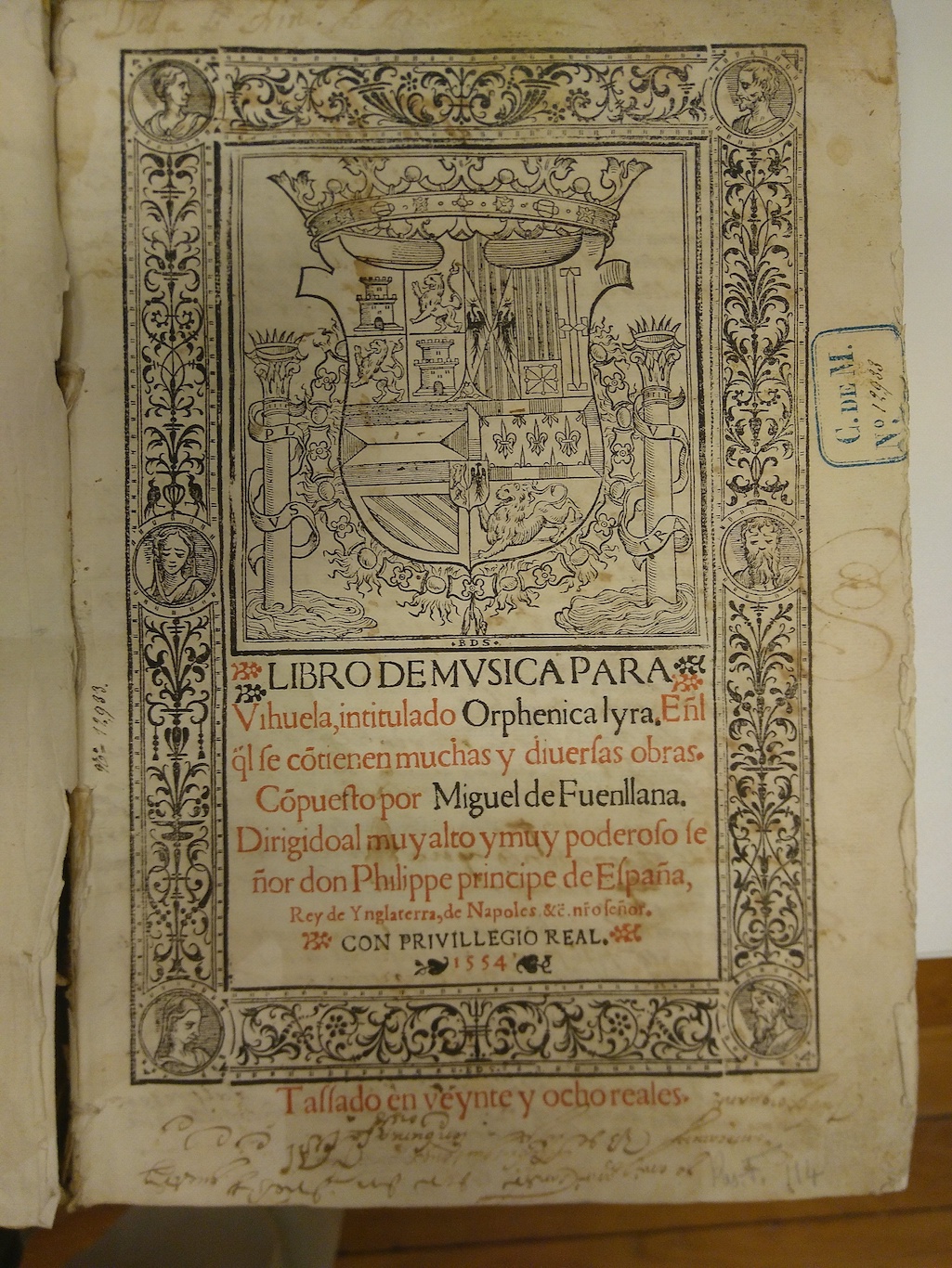 * Libro de musica para vihuela intitulado Orphenica lyra. Miguel de Fuenllana (Sevilla: Martín de Montesdoca, 1554) [155422].