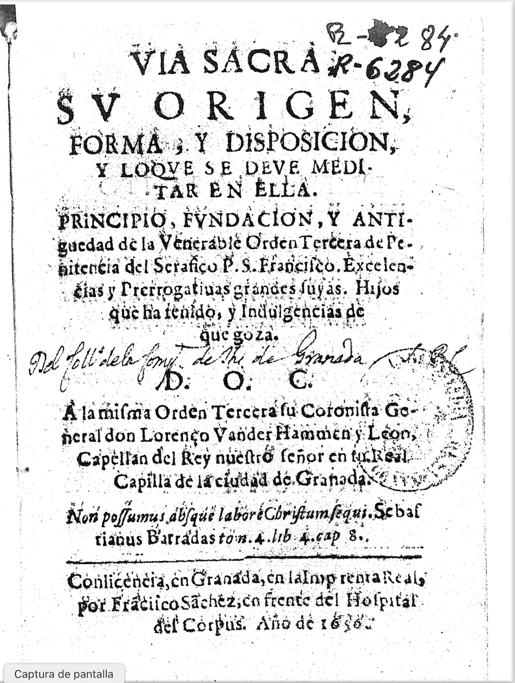 El capellán real Lorenzo Van der Hammen, en su obra Vía Sacra, su origen, forma y disposición de lo que se debe meditar en ella… (Granada: Francisco Sánchez, 1656), nos proporciona todos los detalles de la esencia del ejercicio del vía crucis y de su ceremonial.