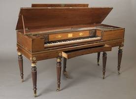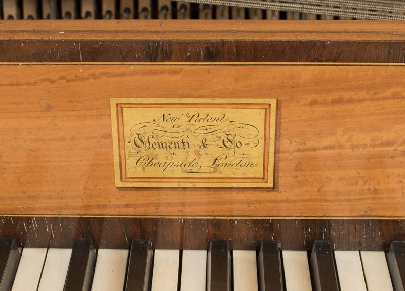 El compositor y pianista italiano Muzio Clementi desarrolló en Londres una intensa actividad como constructor de pianos. Sus distintos modelos de mesa y de cola, exportados con una exitosa estrategia comercial, se convirtieron en un toque de distinción en los salones de la nobleza y la burguesía europea y americana. Lo escueto de la noticia recogida en el inventario y la naturaleza del mismo no me permite especular mucho, ya que los precios de tasación de bienes personales efectuados en este tipo de documentos notariales solían ser muy inferiores a los de mercado, por lo que los 7.000 reales no son asimilable a los del valor real de un instrumento nuevo de similares características. Lo único que se puede asegurar es que su fabricación fue posterior a 1810 que es cuando Clementi incorpora en sus pianos las seis octavas. Queda a la especulación cuál de los modelos de piano fabricados por Clementi fue el que adquirieron los padres de Antonia San Juan Vincenti y Galarza para su instrucción musical, probablemente el modelo de mesa (square pianoforte), el cual, como parte de la citada dote, se instalaría en alguna de las estancias del domicilio de la calle Castellón. Es muy probable que este pianoforte sirviera también para la iniciación musical de María Dolores y Matilde, las dos hijas de los marqueses de Iscar.