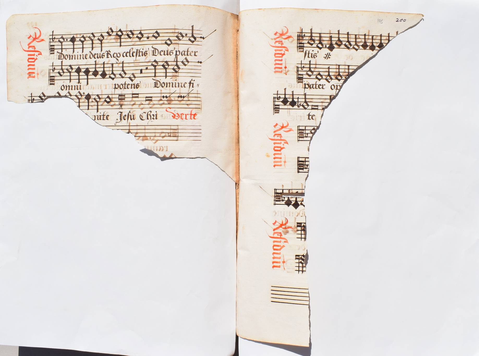 El estudio de los minúsculos fragmentos de los dos últimos folios conservados con el texto “[imma]culata” (fol. 218v,numeración moderna) y “sancta” (fol. 219v, numeración moderna), permiten concluir que no se trata de las versiones del motete Sancta et immaculata compuestas por Francisco Guerrero y Cristóbal de Morales.