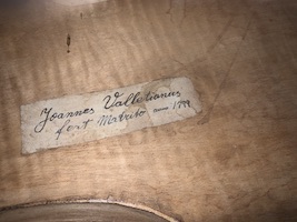 Lütgendorff, en la entrada “Joannes Valetianus” de la primera edición de su libro Die Geigen- Und Lautenmacher (1904),sin especificar el tipo de instrumento, recoge la etiqueta: