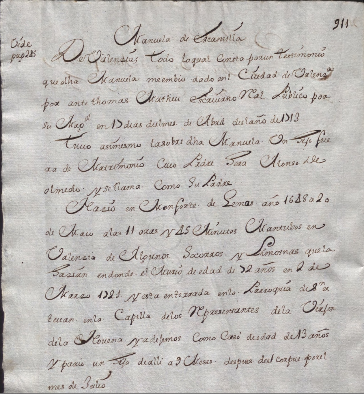 En la segunda entrada [mss. 12917, 911], se nos precisa, con todo detalle, su lugar y fecha de nacimiento: