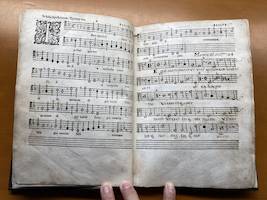 En los pentagramas en blanco de algunas páginas se han copiado, anónimas y por tres manos distintas, las siguientes obras: