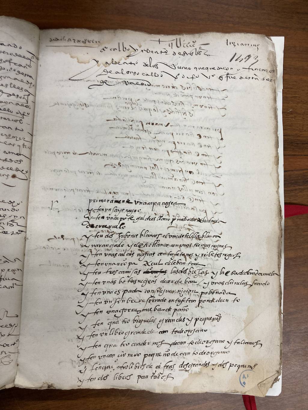 El 7 de agosto de 1561, Lucía Ruiz, mujer que había sido de Alonso Calvo, “músico”, realiza inventario de los bienes de su marido, el cual había fallecido “puede haber cinco o seis años” [c. 1555]. Juan de Santillana, pregonero de la villa de Valladolid, “a altas y extendidas voces”, pregonó en la plaza Mayor, plaza de Santa María y plazuela Vieja que los testamentarios de Alonso Calvo iban a realizar el inventario de sus bienes al día siguiente en “las casas de su morada que son a las Cuatro Calles”. El 15 de agosto, Lucía Ruiz presentaba ante el escribano Francisco Cerón el inventario de los bienes de su marido. Se inicia con el vestuario que había quedado, siguiendo a continuación los instrumentos y libros: