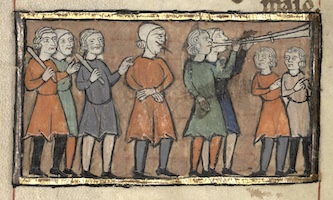 Dos de las miniaturas que se recogen en este manuscrito nos muestran a estos trompetas municipales abriendo los cortejos de los condenados por los delitos de adulterio y perjurio. Se constituyen en su principal elemento sónico, desempeñando la función de llamada a la ciudadanía, el cual estaría presente en muchas ciudades europeas medievales en manifestaciones de exhibición de castigo público de naturaleza similar.