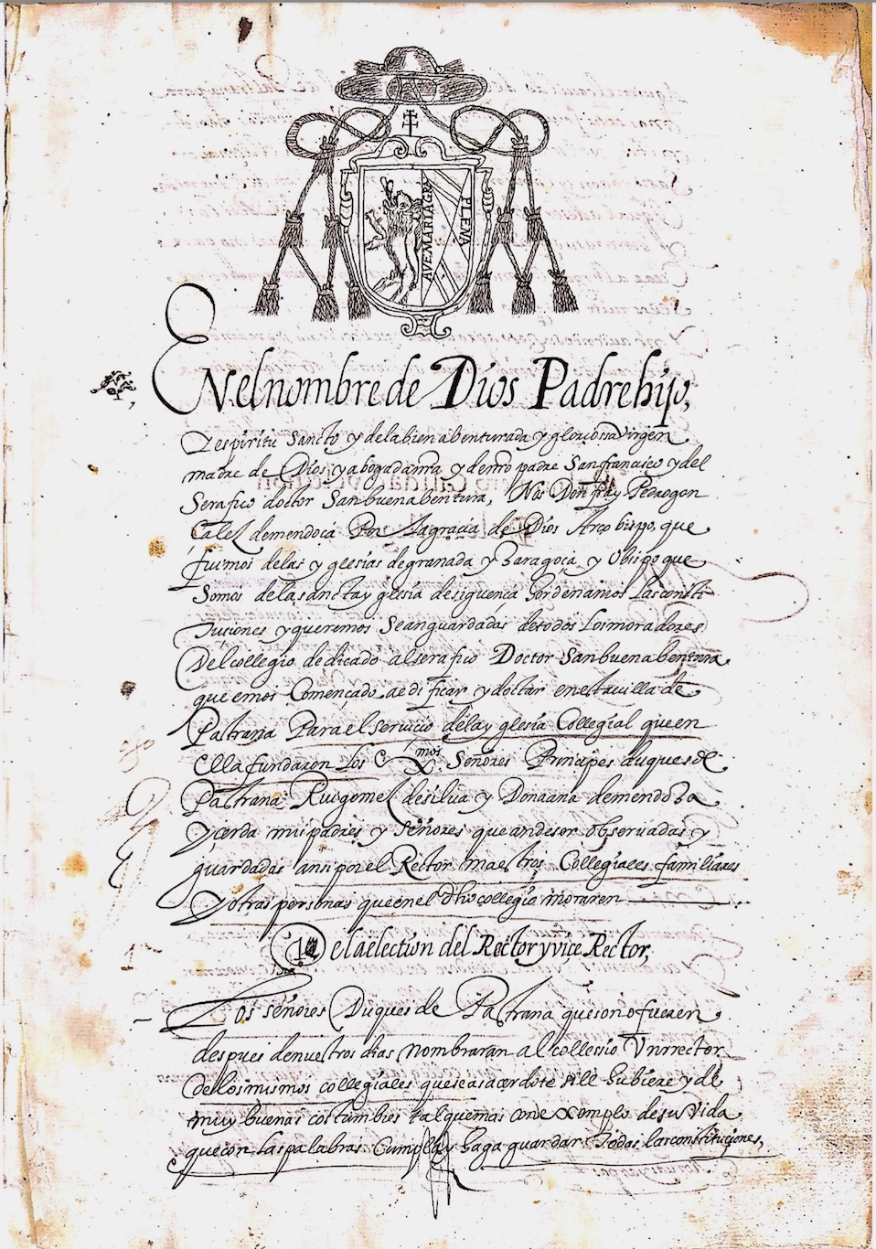 In 1628, Fray Pedro González de Mendoza, bishop of Sigüenza and fifth son of Ruy Gómez de Silva, 1st Duke of Pastrana, and Ana Mendoza de la Cerda, founded the college of San Buenaventura in Pastrana. Its main objective was the higher musical training of singers and instrumentalists to fill the places in the music chapel of the collegiate church of Nuestra Señora de la Asunción, founded by the Dukes of Pastrana.