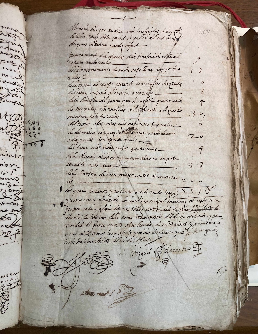 The file containing the will and inventory of assets of the trumpet player Antonio Méndez, resident in Valladolid, allows us to know his wealthy economic position, the details of his burial and testamentary mandates and to know the instruments that remained in his possession at the time of his death.