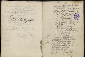 El manuscrito 4085, conservado en la Biblioteca Nacional de España, Obras líricas y teatrales del poeta aragonés Baltasar Funes y Villalpando, se inicia con el texto: