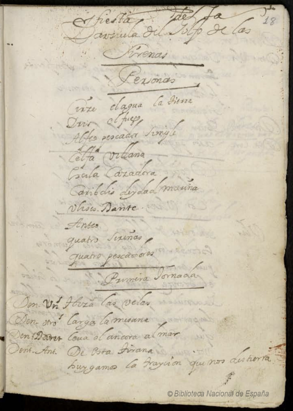 A continuación, encontramos la adaptación que Funes realizó de la zarzuela El golfo de las sirenas de Calderón de la Barca, publicada por este autor como “egloga piscatoria”, que aparece en este manuscrito como “Fiesta de la zarzuela del Golfo de las sirenas”, a la que sigue la “Fábula del juicio de Paris. Fin de fiesta”. Se trata de la misma pieza publicada como baile teatral de entreactos en 1687, acompañando a la zarzuela Las Bélides del conde de Clavijo que se representó en 1686.