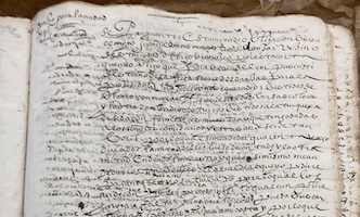 “Una de ocho indios que han de ir vestidos de blanco, con muchas flores de seda de diversas colores, y la otra danza de ocho turcos, vestidos a la turquesca, de seda, conforme a las muestras que tengo dadas a los señores comisarios. Y estas han de ser de tamboril, por lo cual se me ha de dar cuarenta y ocho ducados [19.952 maravedís], la mitad dellos luego de contado y la otra mitad en dando la muestra y que ansimismo me han de dar los tamboriles de las aldeas que yo pidiere, pagándoles yo su trabajo para lo cual los han de compeler por todo rigor, lo cual cumpliré y no haré falta y si la hiciere la ciudad pueda buscar quien haga las dichas danzas a mi costa y por lo que costaren pueda ser ejecutado”. Rubricó el protocolo el escribano que daba fe de conocer “al otorgante que dijo no saber firmar”.