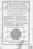 No es habitual que se produzcan profesiones “masivas” de monjas en un convento el mismo día. Por este motivo, resulta especialmente interesante uno de los pliegos de villancicos conservados en la Biblioteca Nacional de España. El título consigna el nombre de las dieciocho “señoras” que profesaron el 8 de septiembre de 1745 en un convento de la Compañía de María, coincidiendo con la celebración de la festividad de la Natividad de la Virgen: