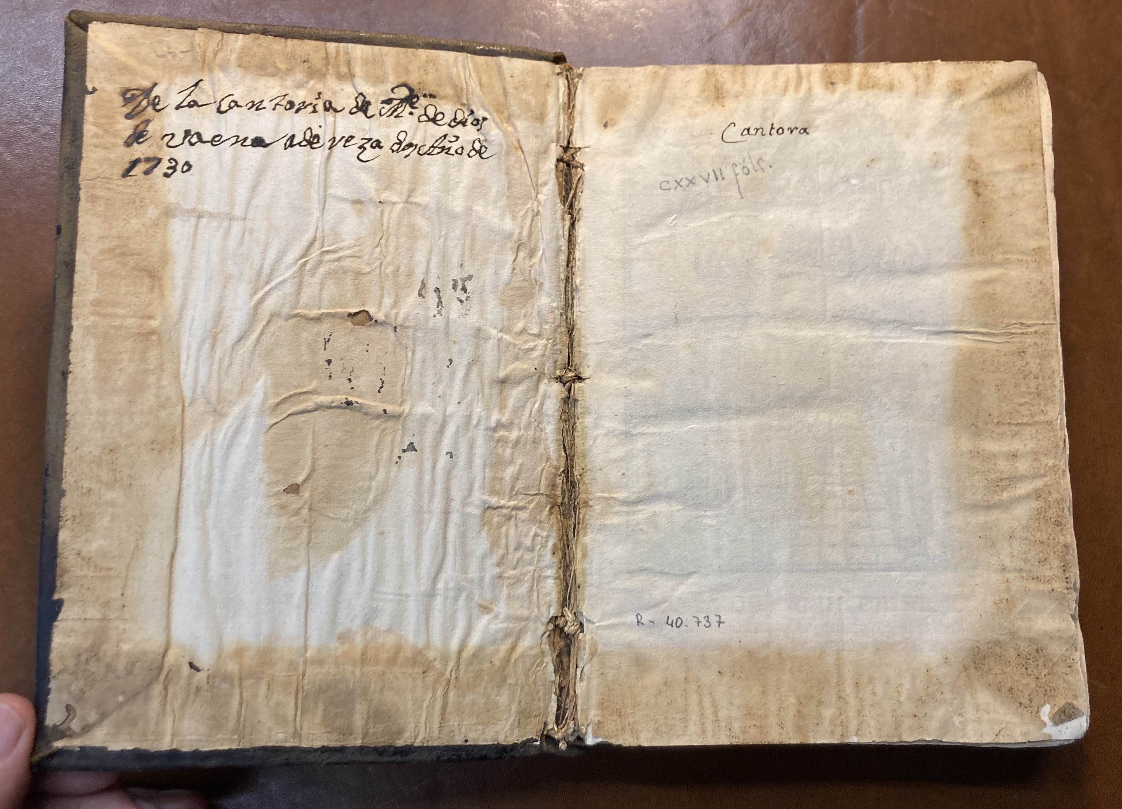 - En la guarda delantera: “De la cantoría de Madre de Dios de Vaena aderezado año de 1730”. La encuadernación actual podría corresponder a esta reparación.
