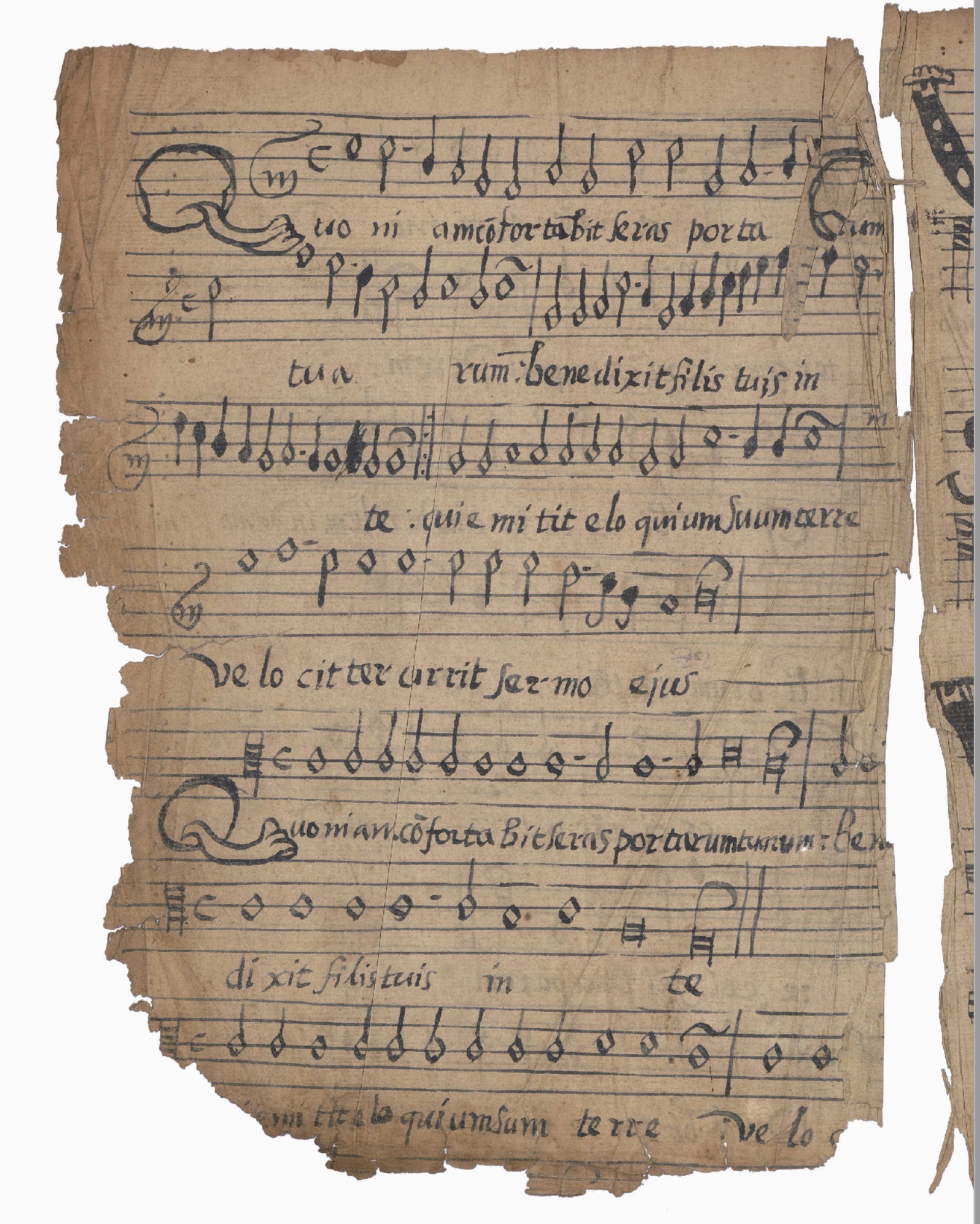 * Pieza 2 [Fol. 9v]. Gloria Patri. [Francisco Guerrero]. Mútilo. Solo se conservan el tiple y el tenor.