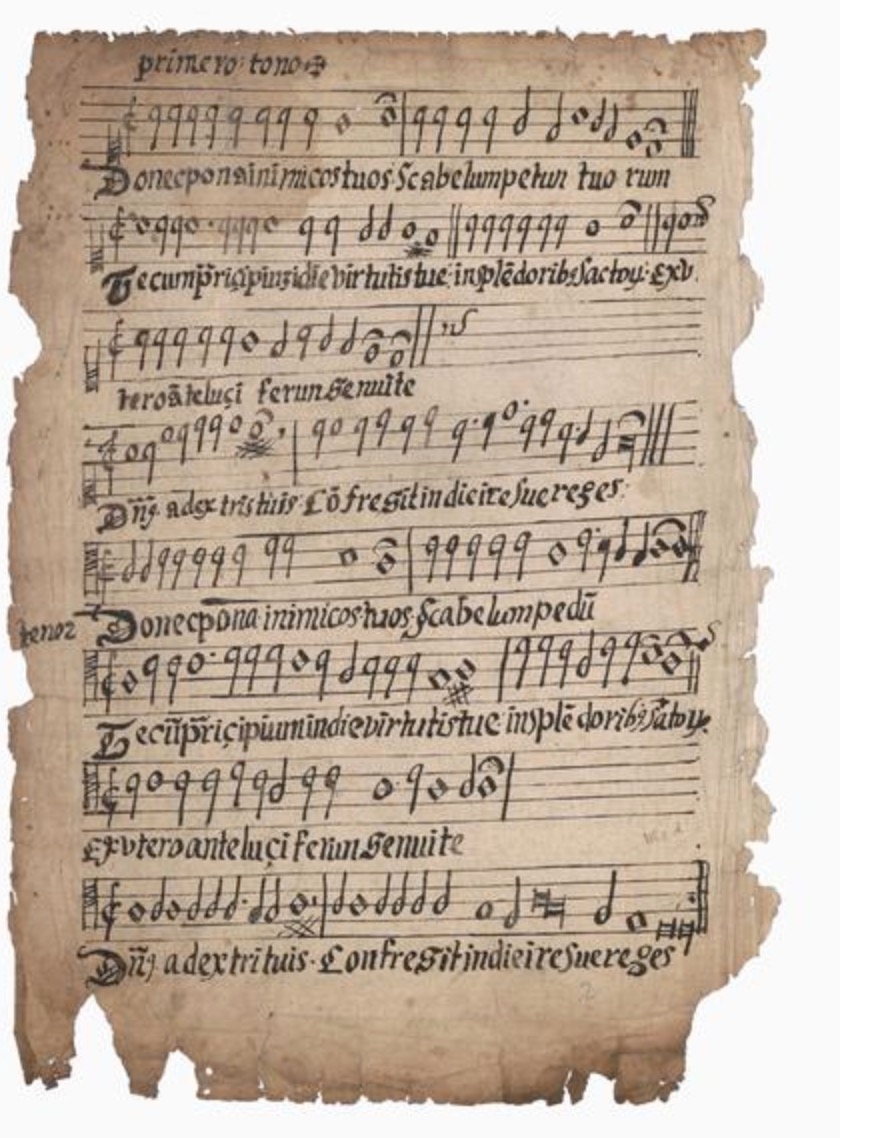 La atribución que Borg hace de esta pieza a Estevan Brito es errónea. Se trata de una versión del salmo 109 de primer tono previa a la publicada en el Liber vesperarum, la cual encontramos también en el manuscrito 5 de Santa Eulalia y en [E-GRmf 975, fols. 5v-6r]. Se copiaron los versos 2, “Donec ponam”, 4, “Tecum principium, 6, “Dominus a dextris”, 8, “De torrente in via”, y la doxología “Gloria Patri” [pieza 2]. La mayor parte de los folios se conservan incompletos.