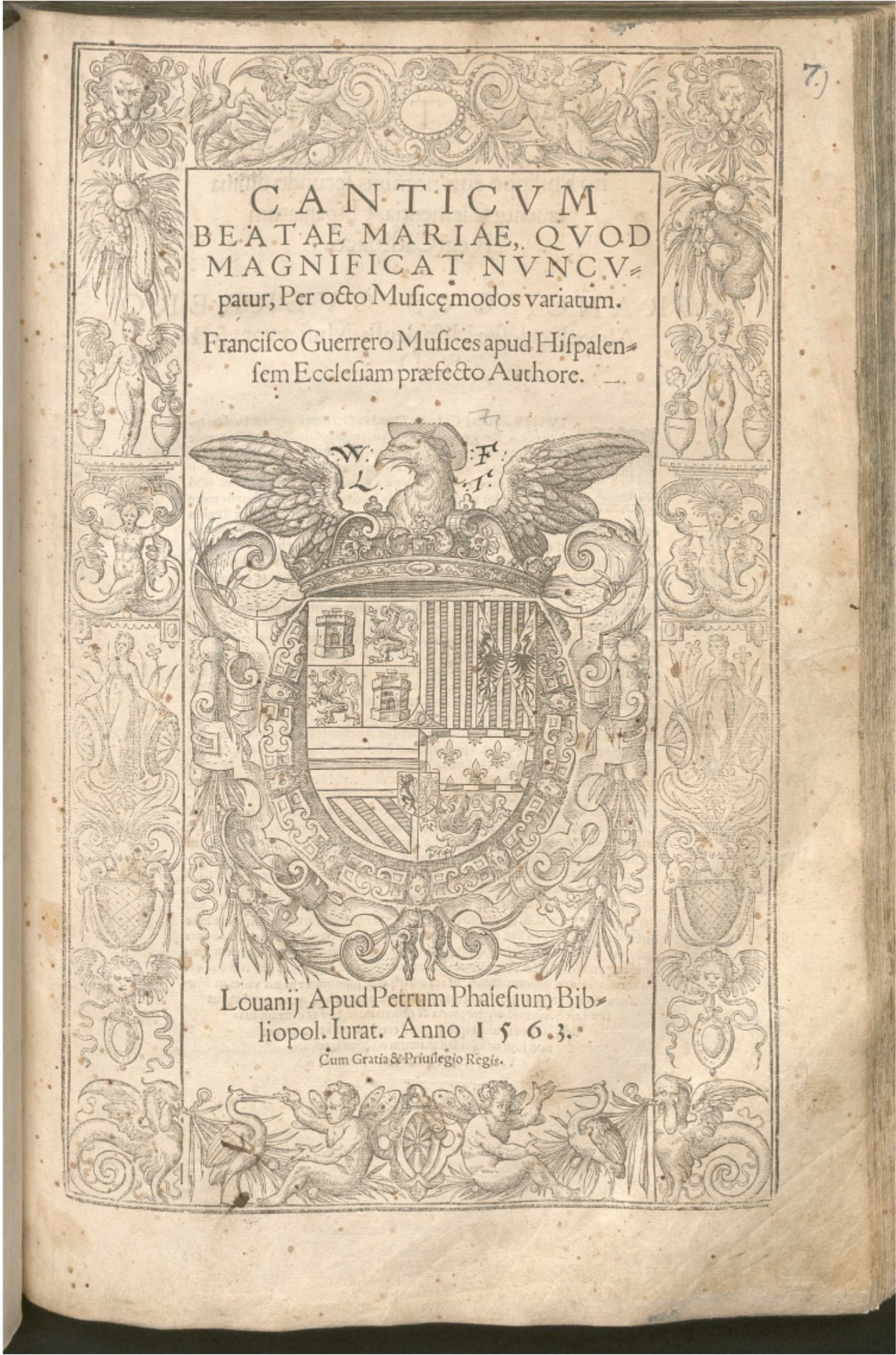 * [N.º 7] Canticum Beatae Mariae quod magnificat nuncupator (Lovaina: Pierre Phalèse, 1563) [G 4867]. Francisco Guerrero.
