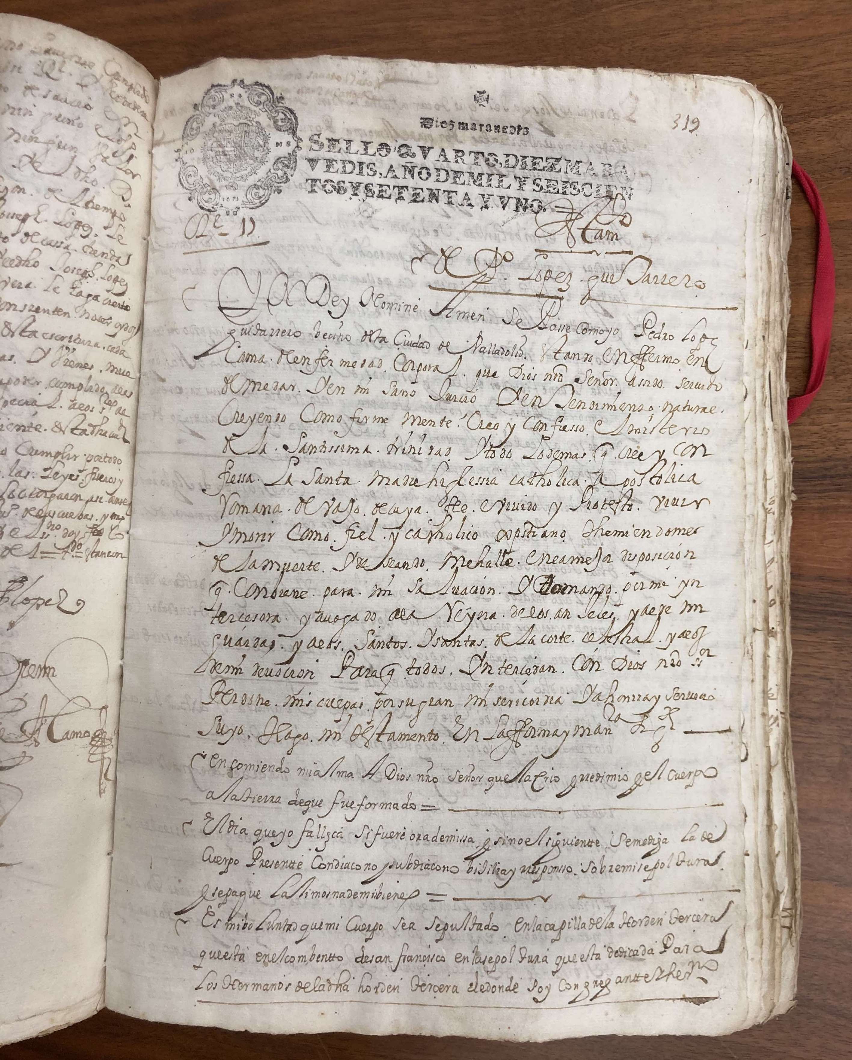 The will of the guitar maker Pedro López (17/10/1671) provides us with some biographical information, his funeral dispositions and the pious mandates for the salvation of his soul, as well as a series of references to certain sums of money owed to him, which bring us closer to his professional activity.
