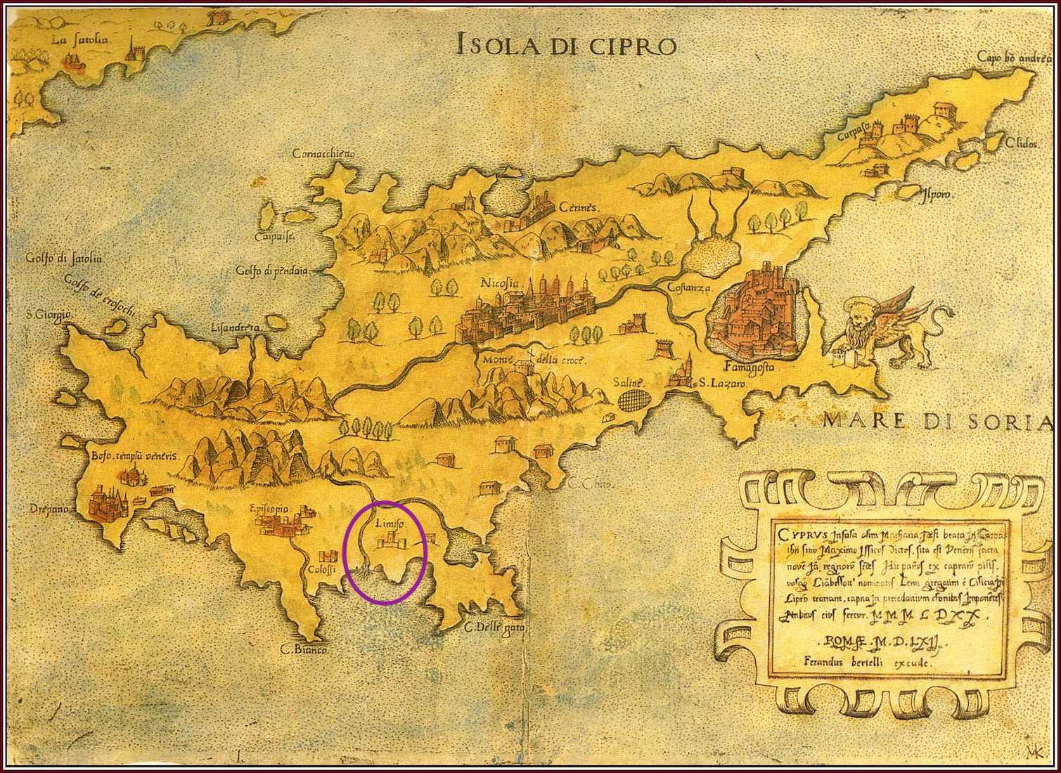 En Limasol, los estragos de la guerra eran muy visibles: “La fortaleza está hecha ceniza de la gran batería que le dieron los turcos y la mayor parte de las casas y la iglesias y cruces de piedra que había en la entrada de la ciudad está todo derribado”. Poco después de la visita, en 1590, los turcos habían ya reconstruido y reforzado esa fortaleza y comenzado la construcción de la gran mezquita (Djami Kepir) sobre uno de los antiguos templos cristianos medievales.