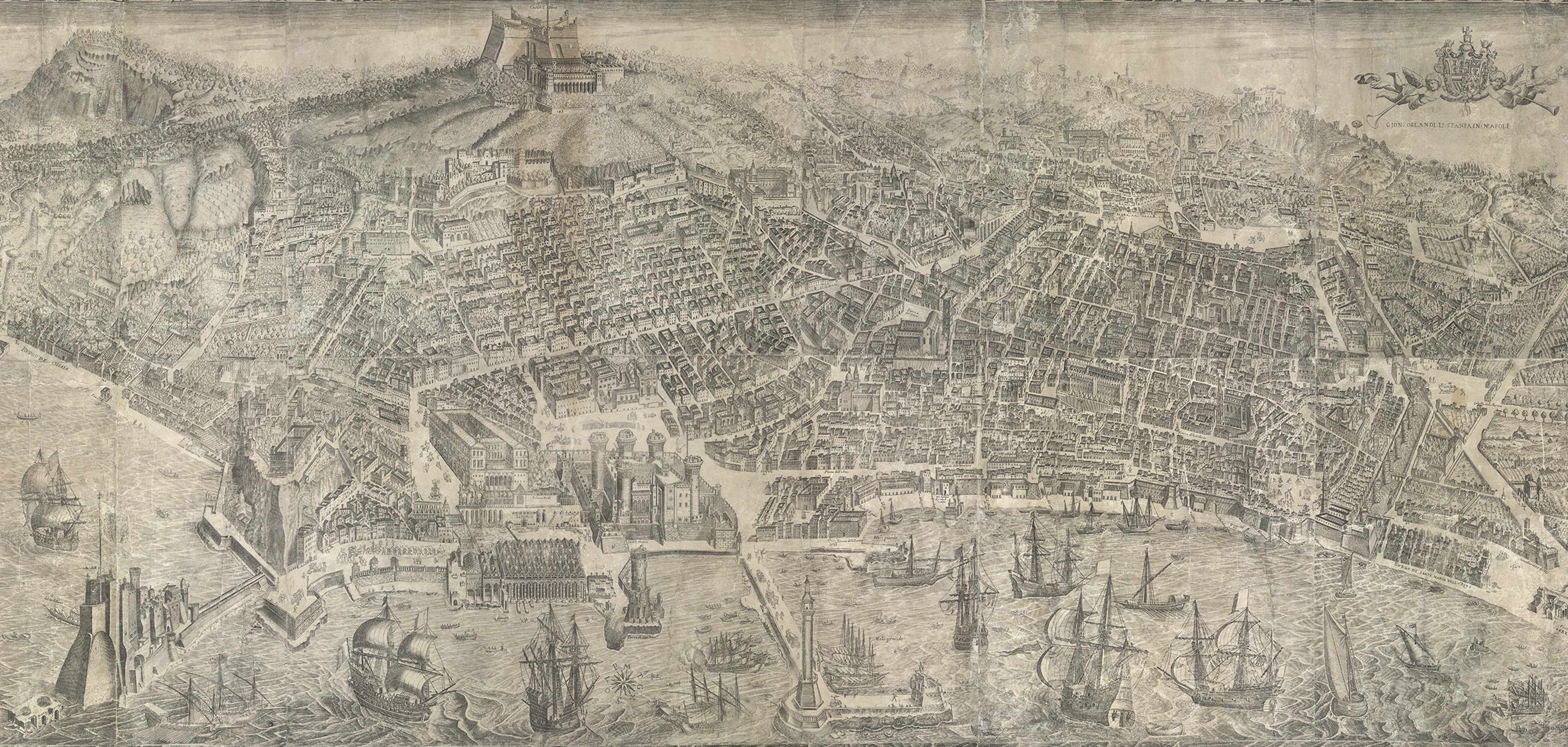 “Empezaron las fiestas, luminarias y fuegos en los castillos que hacían una agradabilísima vista y mucho más el de San Telmo por su mucha distancia y porque se divisaba en él con milagroso artificio una imagen de la Concepción de Nuestra Señora, fraguada de las mesmas luces y no era menos el artificio con que estaban dispuestas las luces del Castillo Novo que cogían en medio un rico estandarte de la Concepción que hacía un viso muy de cerca al parecer. Empezaron los castillos a disparar muchas piezas y morteretes de tan fuertes respuestas que al temblor de los edificios caían en tierra todas las luminarias, en cuyo lugar se fueron poniendo grandísima cantidad de barriles que encendidos era tanta la luz y claridad que parecía verdaderamente medio día...”