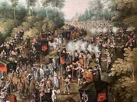En este artículo me centraré en el último de los ocho cuadros de gran formato que Isabel Clara Eugenia encargó al pintor de corte Denis van Alsloot (hacia 1568-1625/1526), en 1616. Seis de ellos, los más conocidos, estaban dedicados a las fiestas del Ommegang en Bruselas, uno al tiro de la infanta al papagayo y el octavo a la fiesta de Nuestra Señora del Bosque, celebradas en 1615. La serie se encontraba en 1636 en el Alcázar de Madrid, en el “Salón Grande de las Fiestas Públicas”, dispersándose posteriormente.