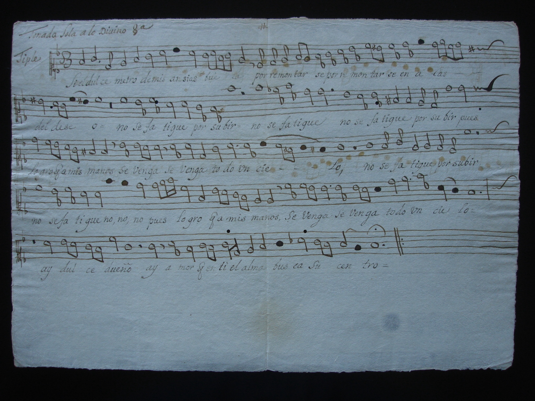 Además de la chansoneta Cuérdamente te acoges, del compositor Juan de Baeza Saavedra, compuesta para la profesión de “Teresica la chiquita”, se han identificado otros dos villancicos en la Colección Sánchez Garza, dedicados a esta ceremonia conventual: Si el dulce metro de mis ansias y Albricias, zagalas, ambos anónimos. En el caso del primero, aunque no tiene ninguna indicación expresa de ser para profesión de monja, el texto poético es claramente alusivo a la unión esponsal entre la religiosa y Jesús. En su portada se lee: “Tonada Sola a lo Divino/ Para La Muy Reuerenda/ Madre, Clara gregoria/ de La Assension &.” Por la dedicatoria, se deduce que el autor de la música debió ser alguien vinculado con el convento, tal vez algún músico activo en la Catedral de Puebla en el tránsito del siglo XVII al XVIII, por el estilo de la composición. En esta tonada para tiple y acompañamiento, el estribillo representa la voz de la profesa (en primera persona), que a través de su canto busca la deseada unión con Jesús: “Si el dulce metro de mis ansias trina/ por remontarse en alas del deseo,/ no se fatigue por subir, pues logro/ que a mis manos se venga todo un cielo. Ay, dulce dueño, ay, amor,/ que en ti el alma busca su centro.” Estos dos últimos versos se repiten, a manera de refrán, al final de cada copla. Primera copla: “Hoy por buscar al esposo/ se oculta en el casto velo/ la que amante solicita/ en sus finezas el centro./ Ay, dulce dueño...