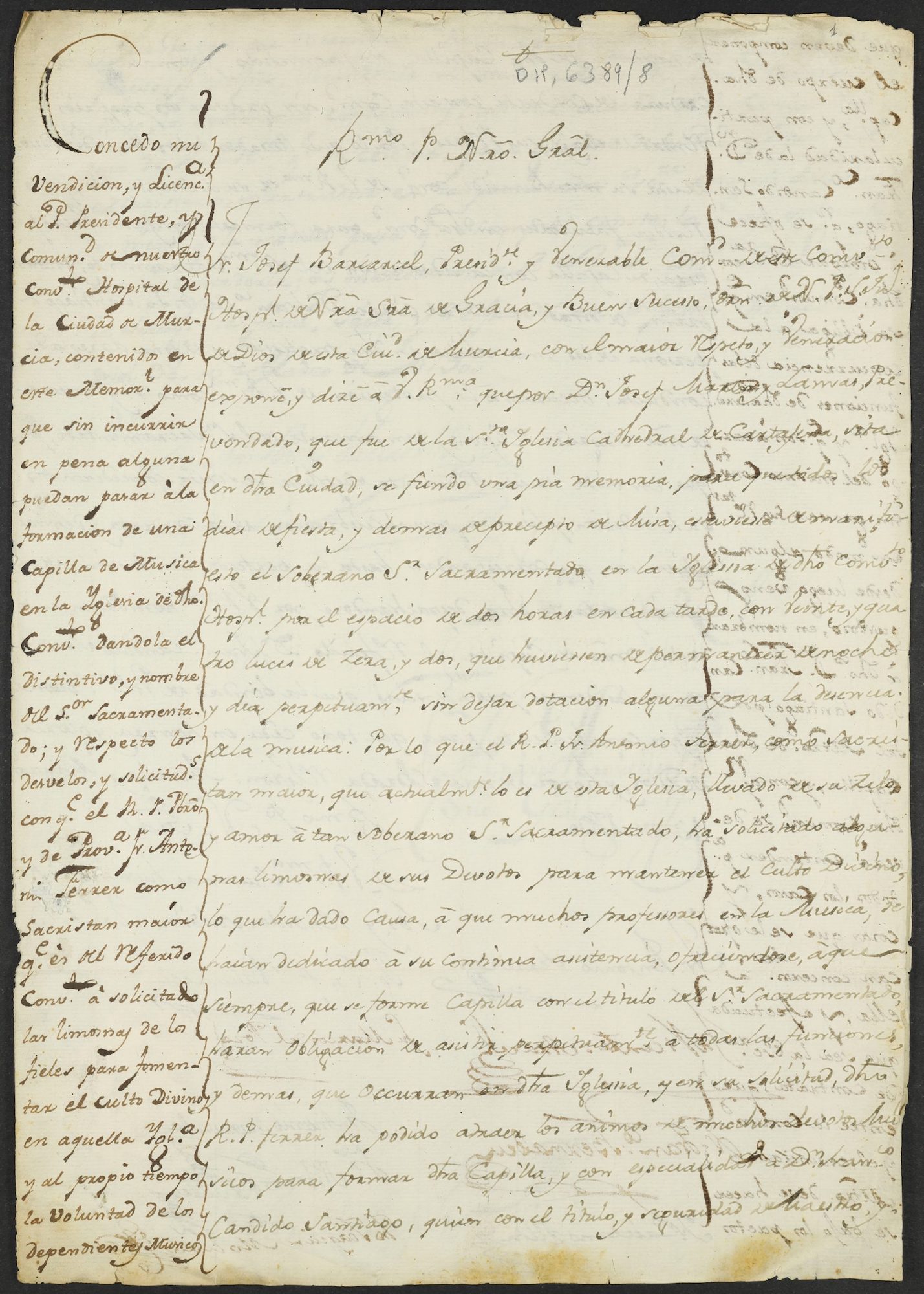 In 1790, the religious community of the convent-hospital of Nuestra Señora de Gracia y Buen Suceso of the Order of San Juan de Dios in Murcia asked the general of the Order in Spain for permission to create the chapel of music of Señor Sacramentado and to appoint Francisco Cándido Santiago as its chapel master, which was granted.