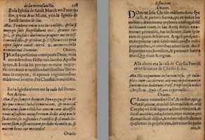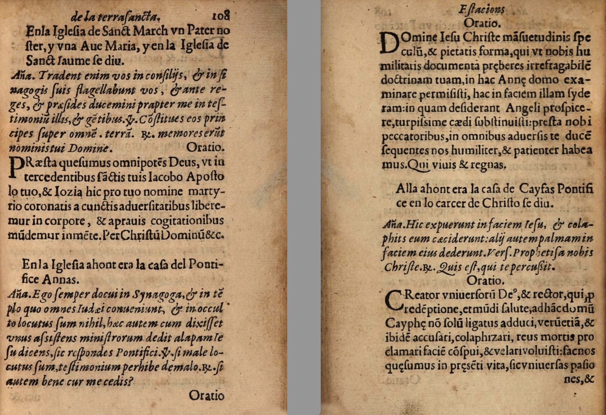 journey , Miquel Matas. La devota peregrinació de la Terra Sancta , Antonio de Castillo. El devoto peregrino, viaje de Tierra Santa , Itinerary of Francisco Guerrero's journey to Jerusalem , Tradent enim vos in consiliis (antiphon) , Praesta quesumos omnipotens Deus (oratio) , Ego semper docui in Synagoga (antiphon) , Domine Iesu Christe mansuetudinis speculum et pietatis forma (oratio) , Hic expuerunt in faciem Iesu (antiphon) , Creator universorum Deus et rector mundi (oratio) , Vos vocatis me magister (antiphon) , O Rex regum omnipotens et infinitae bonitatis Domine Iesu Christe (oratio) , Statuerumt autem duos Joseph qui vocabatur Barsabas et Matthiam (antiphon) , Deus qui B. Matthiam Apostolorum tuorum collegio sociasti (oratio) , Hic obiit beata et gloriosa Virgo Maria (antiphon) , O Domine Iesu Christe cuius maiestas infinita est (oratio) , Hic est discipulos ille, quem diligebat Iesus (antiphon) , Exaudi benignissime Iesu preces nostras (oratio) , Felix namque es sacra Virgo Maria (antiphon) , Famulorum tuorum quaesumus Domine dilictis ignosce (oratio) , Sub tuum praesidium (antiphon) , Interveniat pro nobis Domine Iesu Christe (oratio) , Haec dixit Dominus, decima die mensis (antiphon) , Deus universae carnis creator (oratio) , Euntes in mundum universum (antiphon) , Aeterna lucis splendor et sapientia patris Domine Iesu Christe (oratio) , Hic impetum Judaei in Domine nostri Iesu Christi (antiphon) , Omnipotens sempiterne Deus qui coelorum reginae corpus gloriosum (oratio) , Tunc coepit detestari et iurare (antiphon) , Da nobis quaesumus Domine fidei (oratio) , Postquam impleti suny dies purgationis Mariae (antiphon) , Omnipotens sempiterne Deus, clementiam tuam supplices exoramu (oratio) , mapping Francisco Guerrero , Miquel Matas (priest) , franciscans friars