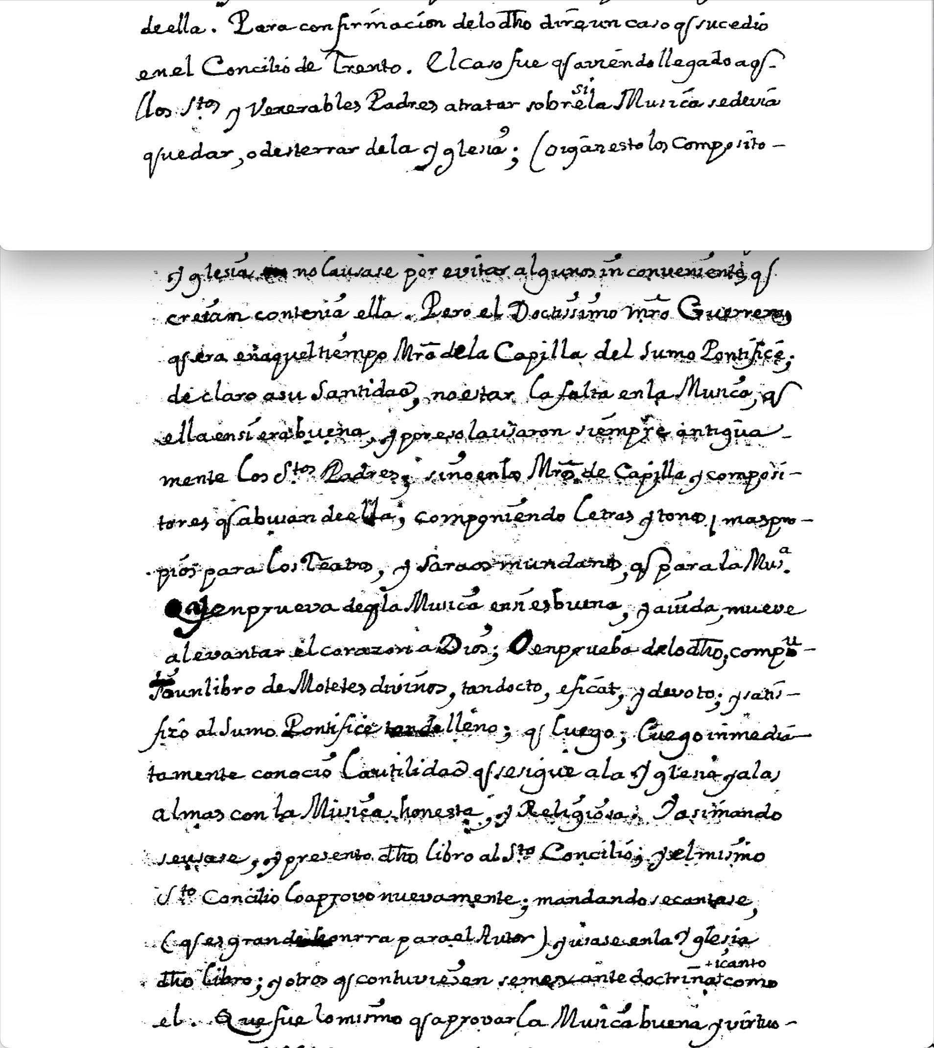 In the middle of the 18th century, the figure of Francisco Guerrero was still highly respected. This is evidenced by the curious reference to this composer in the treatise Historia y origen de la música y canto llano by Juan Sánchez Vidal (1755).