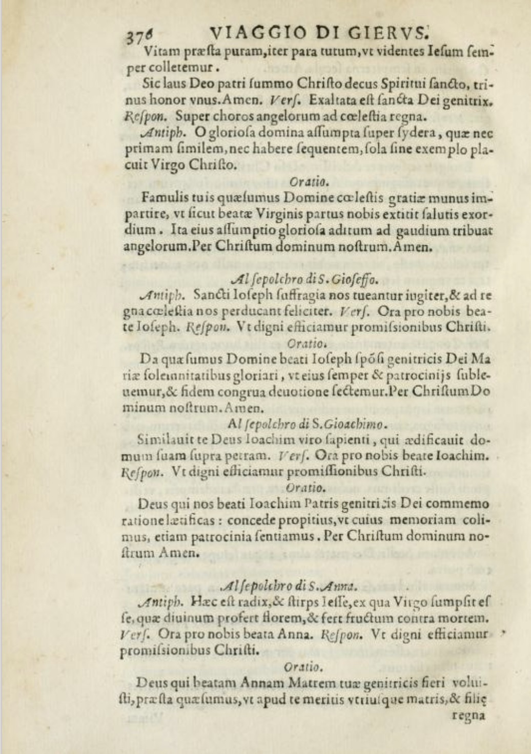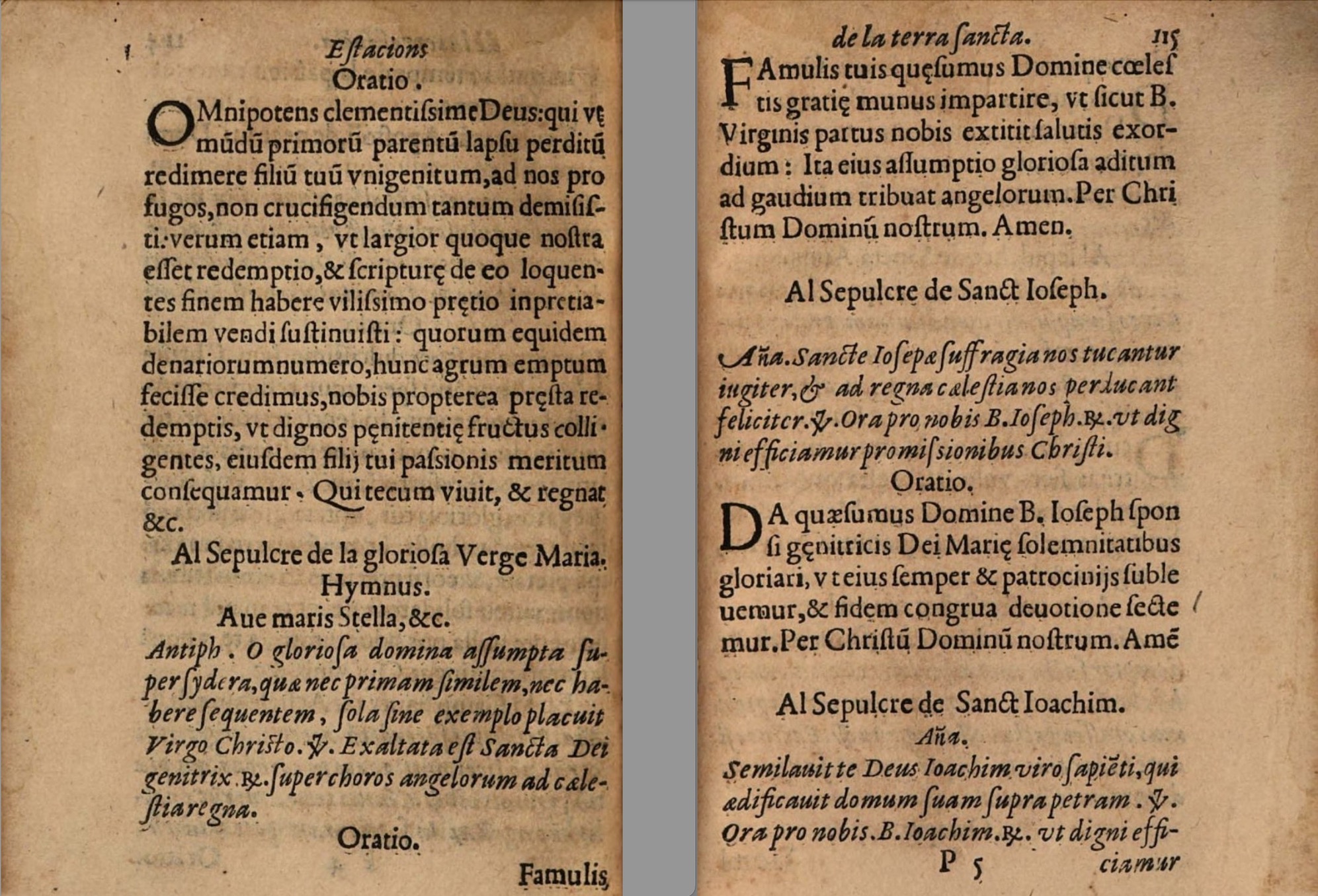 journey , Ave Maris Stella (hymn) , O gloriosa domina assumpta super sidera (antiphon) , Famulis tuis quaesumus Domine (oratio) , Sancte Joseph saffragia nos (antiphon) , Da quaesumus Domine beati Joseph sponsi genitrici Dei Mariae (oratio) , Similavit te Deus Joachim viro sapienti (antiphon) , Deus, qui nos beati Joachim patris genitris Dei (oratio) , Hac est radix et stirps Jesse (antiphon) , Deus qui beatam Annam matrem tuae genitricis fieri volvisti (oratio) , Dominus Jesus Christus mundi redemptor (antiphon) , Domine Jesu Christe dulcisime qui antequam patereris Hierosoliman (oratio) , Assumpto autem Jesus Petro et duobus filiis Zedebei (antiphon) , Dulcissime domine Jesu Christe qui quantum humanam possit fragilitas praenosceris (oratio) , Dederat autem eis traditor signum dicens (antiphon) , Domine Jesus Christe humani generis benigne redemptor (oratio) , Respice quaesumus Domine super hanc familiam tuam (oratio) , Principes sacerdotum, acceptis argenteis dixerunt (antiphon) , Onmipotens clementissime Deus qui in mundo primorum parentum lapsu (oratio) , Tristes erant apostoli (hymn) , Omnes vos scandalum patiemini in me in nocte ista (antiphon) , Benigne ac semper dulcissime Jesu Christe derelinquentium spes (oratio) , Ave regina caelorum (antiphon) , Deus qui virginalem aulam beatae Mariae virginis in qua habitares eligere dignatus es (orario) , Expuit Jesus in terram et fecit lutum ex sputo et linivit super oculos (antiphon) , Deus cui nihil impossibile sed solo verbo restauras universa (oratio) , Miquel Matas. La devota peregrinació de la Terra Sancta , Jean Zuallart. Il devotissimo viaggio di Gerusalemne , Itinerary of Francisco Guerrero's journey to Jerusalem , mapping Francisco Guerrero , Miquel Matas (priest) , franciscans friars , Order of Discalced Franciscans , Jean Zuallart (mayor, pilgrim)