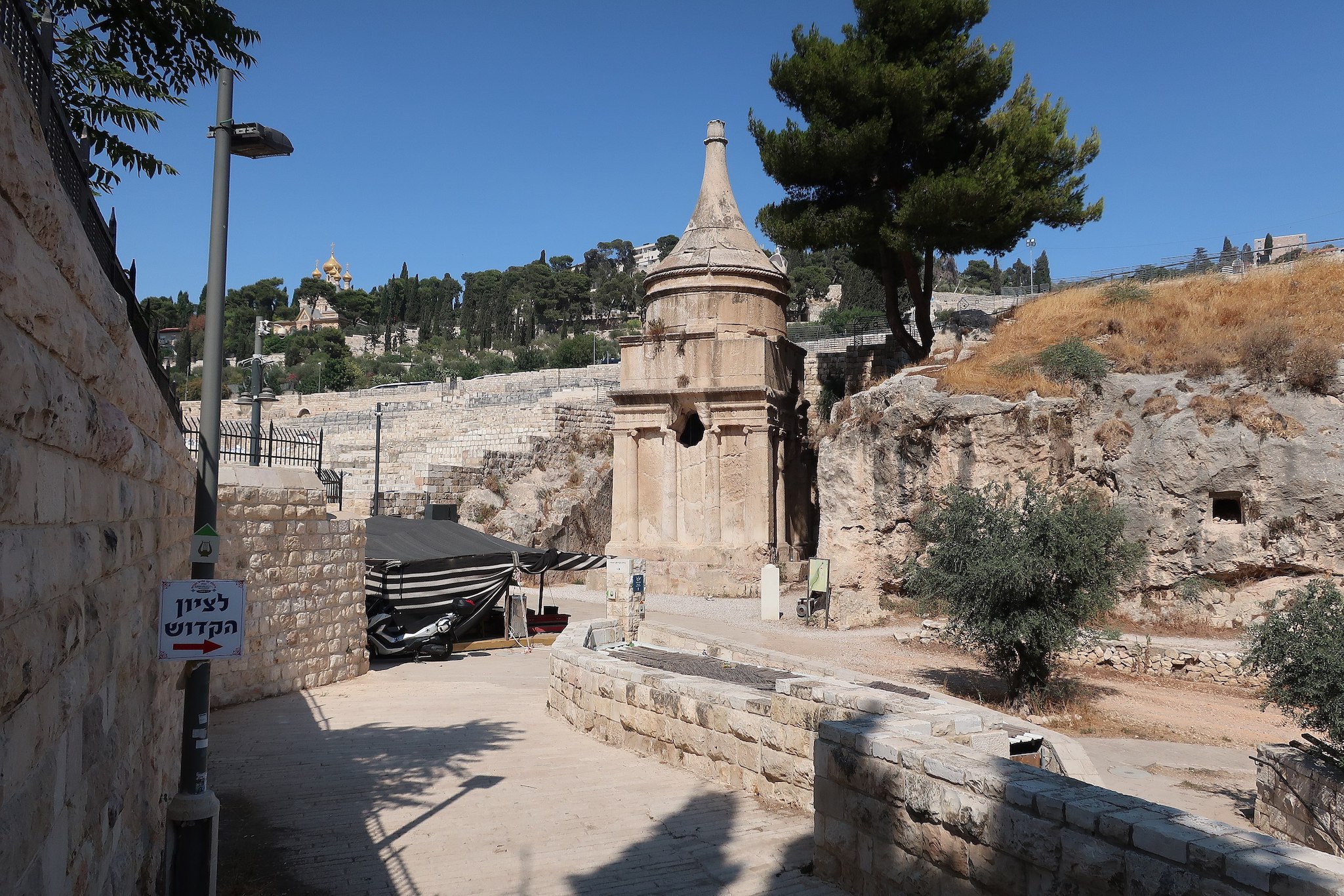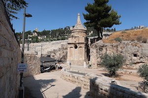 - “ Un hermoso edificio, cavado en la peña, a modo de una capilla redonda, todo de una pieza, ecepto el chapitel”, que era el sepulcro de Absalón, hijo de David [n.º 36, ver recurso].