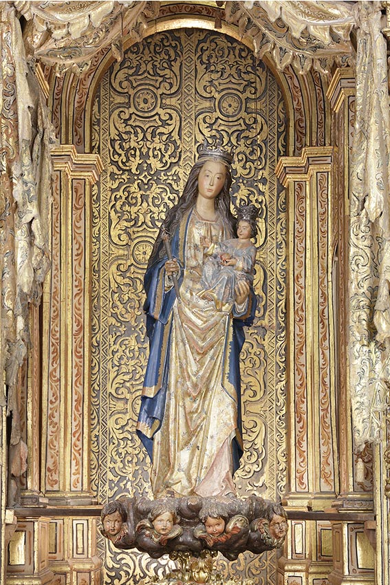 En la proa del segundo carro, un niño que representaba al rey David: “oíase tan dulcemente cantar que toda admiración prevenía en lo suave de su voz, a quien acompañaba la sonora armonía de una arpa, con tal destreza tocada que a la dulzura de esta mucho le sobró de divina y lo diestro del tocar aquella…” El niño cantaba las estrofas de La Judit valerosa, a las que respondían con el estribillo “Que a Holofernes soberbios / corta cabezas” un coro de niñas que representaban a las virtudes. Remataba este segundo carro un trono en el que iba una imagen de la Virgen con “su hijo en los brazos”. El grupo de niñas citado, menores de doce años, tocaban diferentes instrumentos con los que cantaban “motetes” en alabanza a la Virgen. Una de ellas, que personificaba a la Fe, interpretó las estrofas de la canción En este triunfante carro, cantando las demás el estribillo: “Viva, viva la gala / de Madre y Hijo, / la victoria le canten / todos los siglos”. La Caridad llevaba en las manos un arpa, la Esperanza una vihuela, la Prudencia otra vihuela, la Justicia, igualmente una vihuela, la Fortaleza un “vigolín” (= violín) y la Templanza “un órgano” que tocaba con tal “primor… que fue admiración de cuantos su destreza veían”. El clero iba después de este segundo carro, entre ellos cuatro sacerdotes portaban “en andas de plata y custodia de oro (en forma triangular) la preciosa reliquia y paño de la siempre Virgen Madre”. Se trataba de un lienzo triangular que se había encontrado en los escombros de la Torre Turpiana (antiguo alminar de la mezquita mayor) en 1588, junto a otros objetos, entre ellos un texto en el que decía que era: “medio paño con que la Virgen María limpió las lágrimas de los ojos en la pasión de su Hijo Sagrado”. Tras ellos, un grupo de “diestros músicos que en sonoros motetes, debidos elogios cantaban de la pureza mayor…”. Seguían a continuación algunos miembros de la cofradía de Nuestra Señora de la Antigua de los escribanos de número de la ciudad, los cuales, junto a los integrantes del cabildo catedralicio, escoltaban a su imagen titular que era portada por cuatro capellanes. Cerraban el cortejo el cuerpo del cabildo ciudadano con sus porteros, a cuyo frente estaba el alcalde, el Tribunal de la Inquisición y varios representantes de la Real Chancillería, encabezados por su presidente.