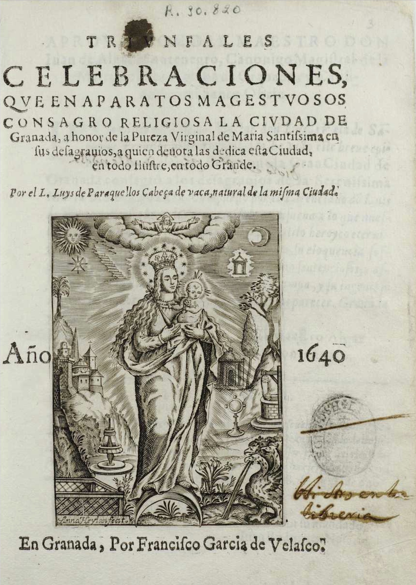En este artículo me centraré en la procesión que tuvo lugar el 13 de mayo, organizada por los cabildos de la ciudad y de la catedral, ya que fue una de las más destacadas en lo que respecta al programa iconográfico y literario desarrollado y a la espectacularidad de los elementos sensoriales desplegados. El cronista que nos permite conocer todos los detalles de esta procesión es el licenciado Luis de Paracuellos Cabeza de Vaca, natural de Granada, el cual fue testigo del acontecimiento. Francisco Henríquez de Jorquera la recoge también en sus Anales de Granada de 1640 y nos remite al impreso de Paracuellos Cabeza de Vaca.