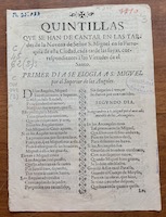 A loose leaflet, without imprint, preserved in the Library of the Royal Hospital of Granada, printed in this city in the eighteenth century, allows us to know the texts of the quintillas that were sung in the novena that the church of San Miguel dedicated annually to its titular saint.