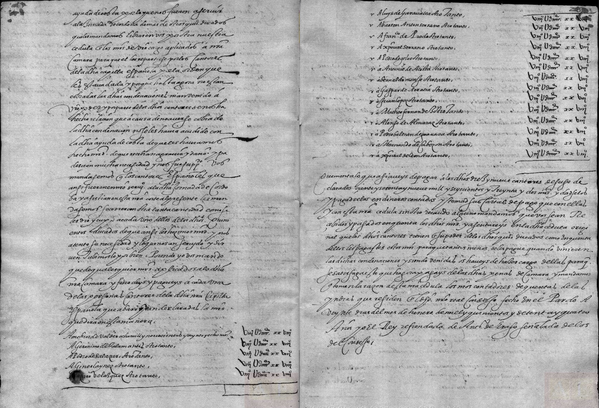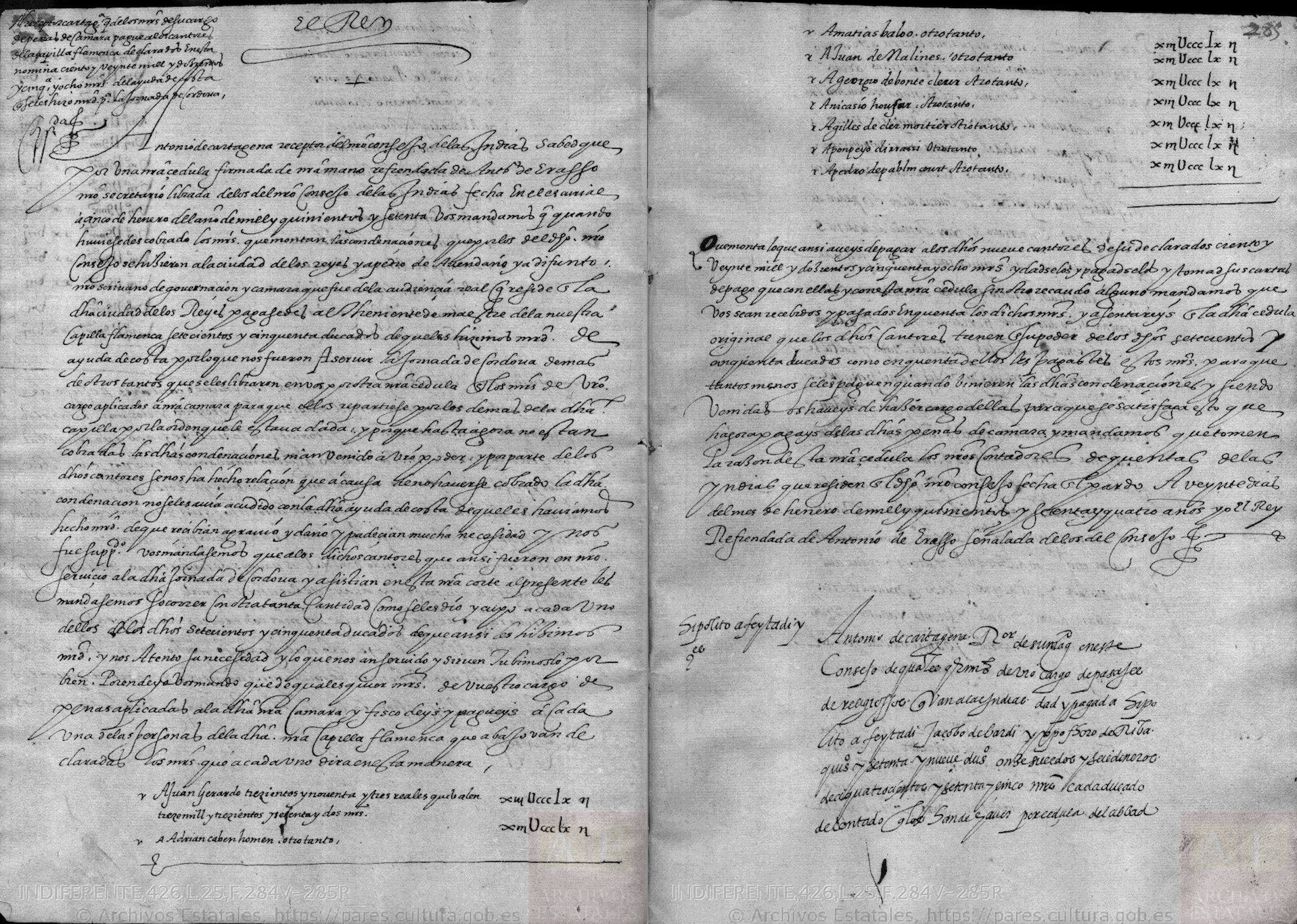 - La segunda precisa que se pagarían a Luis Manrique, limosnero mayor, dos libramientos de 500 ducados (187.500 maravedís) para que los “reparta a los cantores de nuestra capilla española que van a nos servir en esta jornada de Córdoba”.
