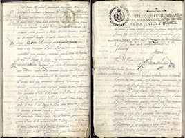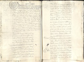 Lawsuit filed in Madrid by Agustín de Silva Fernández de Híjar, 10th Duke of Hijar, against Alfonso García Jiménez, notary of that city, regarding the return of a fortepiano, built by Francisco Fernández (c. 1807), belonging to the duchess, which had been stolen from her home on Carrera de San Jerónimo by the Imperial Commission during the invasion of French troops in 1809.