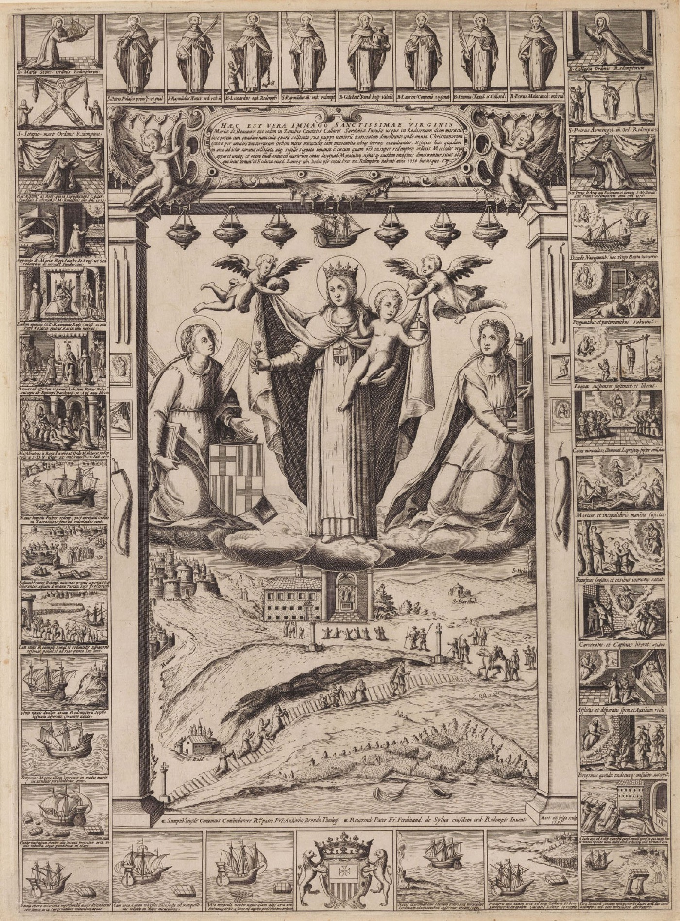 El testimonio más antiguo del culto a la Virgen de Buen Aire se remonta a 1418, año en el que la tripulación de un barco que hacía la ruta Palermo-Cáller-Barcelona hizo escala en el santuario para depositar una vela encendida a los pies de su imagen. La Virgen del Buen Aire aparece en un códice datado en la década de 1470 que recoge el texto de las Sante Parole, una oración, en forma de cantilena, que era entonada por los marineros en situaciones de peligro. La fama del santuario se incrementó de forma notable a lo largo del siglo XVI, cuando comenzó a recibir cada vez más peregrinos y donaciones de exvotos y tablillas en las que se ilustraban los milagros acaecidos en el mar. Al convento se llegaba, a finales del siglo XVI, por dos vías: “uno es el camino de los carros y caballos, el otro es el camino común, por donde viene toda la gente al dicho monasterio y iglesia de Buen Aire y en cada uno hay sus cruces. Y este camino común por el cual viene toda la gente sube por una alda del monte, encima de las cuevas, donde hay una grandísima escalera con sus gradas en medio deste monte” (ver recurso). La plaza delante de la iglesia estaba llena de sepulturas “las cuales son del tiempo antiguo, cuando esta iglesia era parroquia…”.