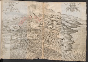 Between March and July 1669, Mount Etna experienced its most destructive eruption in two thousand years. During the first few months, numerous prayer processions were held in the villages on the slopes of the mountain, known as Mongibello, and in the city of Catania, which was reached by lava on 30 April, destroying part of the city walls and various buildings. It was customary for various relics to be carried in these processions, including the veil of Saint Agatha, which was believed to have the thaumaturgical power to stop the lava flows.