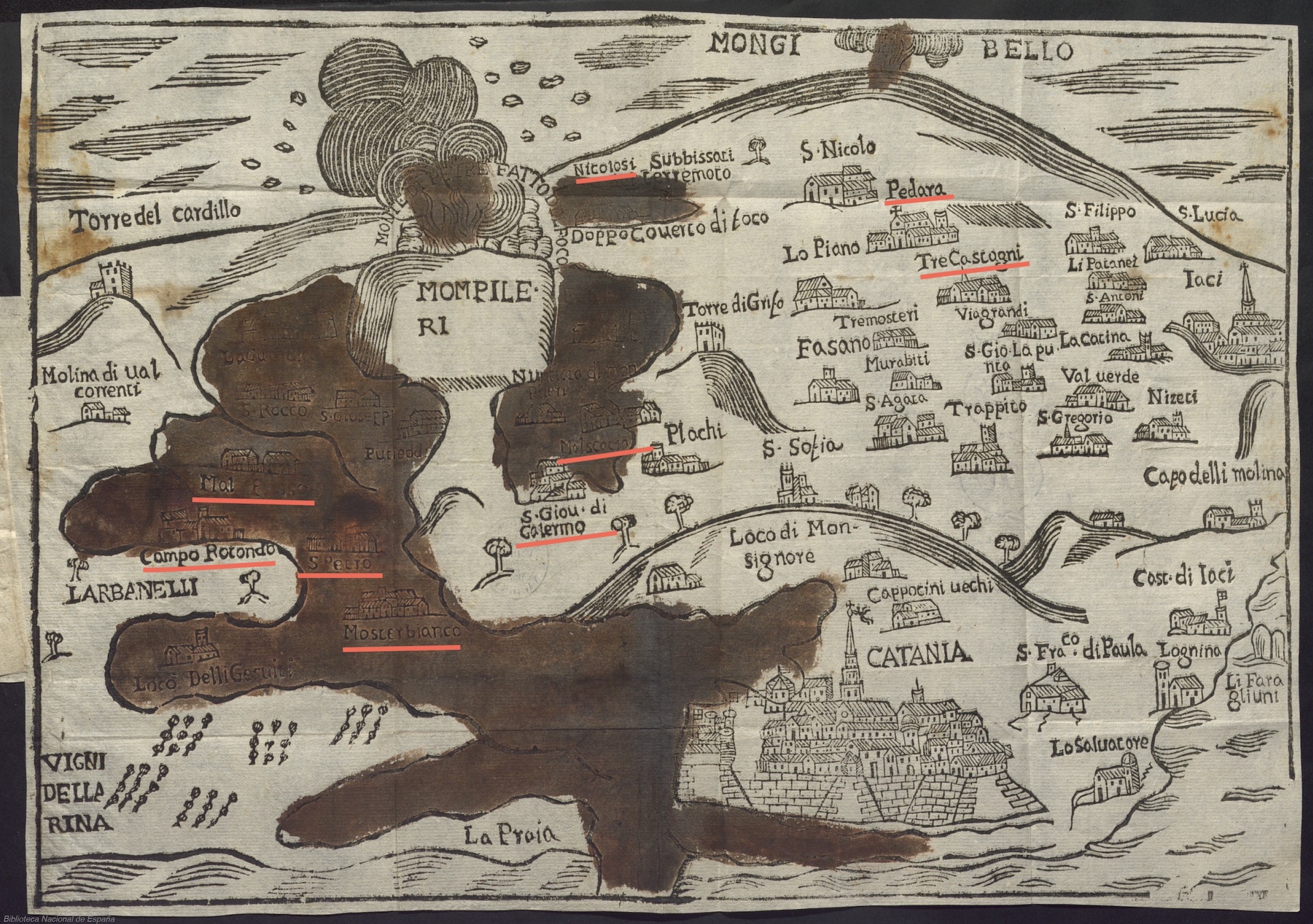La historia de Catania ha estado ligada a la actividad volcánica y sísmica generada por el Etna, el volcán activo más grande de Europa que corona la montaña que la población local conocía como Gibello o Mongibello. La erupción que tuvo lugar entre marzo y julio de 1669 fue la más destructiva de los últimos 2000 años y la narración de sus consecuencias e impacto sobre la población fue recogido por distintas crónicas coetáneas en prosa y en verso, la mayor parte de ellas en italiano, las cuales tratan de reflejar en sus relatos y en los grabados que las ilustran la magnitud de la devastación causada. En este artículo me centraré en una fuente menos conocida, una traducción al portugués de una de esas crónicas, que resta anónima, publicada en Lisboa el mismo año de este luctuoso suceso: Relaçao do novo incendio do monte Etna, chamado vulgarmente Mongibello, na ilha de Sicilia, com as ruinas de muitos lugares circumvesinhos â Cidade de Catania, e dos milagres e prodigios que obrou o. S. Veo da insigne Virgem & Martyr Santa Agueda natural desta Cidade, aos 11 dias do mes de Março deste anno de 1669: Com a destruição de outras terras da mesma ilha, causada dos tremores de terra ; tudo fielmente traduzido da Relação italiana impressa em Catania & em Leorne (Lisboa: António Craesbeeck de Mello, 1669). Para completar el información, me he apoyado también en una de las crónicas italianas a las que he hecho referencia, la escrita por Tomaso Tedeschi Paternò, lector de Teología de la Universidad de Catania, Brebe raguaglio degl’incendi di Mongibello avvenuti in quest’anno 1669 (Napoli: Egidio Longo, 1669).